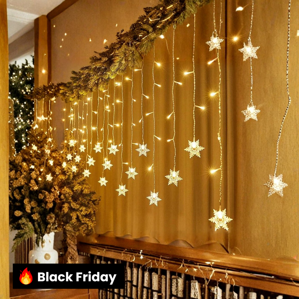 Luzes em LED Modelo Cortina Decoração de Natal Flocos de Neve
