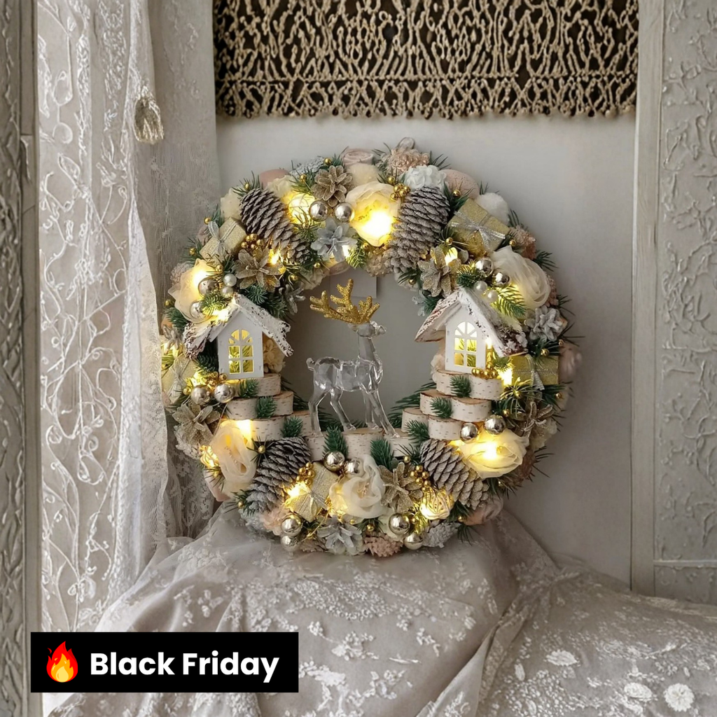 Decore sua entrada com a nossa deslumbrante Guirlanda Natalina! Feita com uma mistura exuberante de folhagens verdes frescas, esta guirlanda é adornada com brilhos sutis, pinhas rústicas e laços vermelhos vibrantes. As luzes LED delicadamente entrelaçadas criam um efeito mágico, iluminando a sua porta com um calor acolhedor. Com um toque de moda e tradição, esta guirlanda é perfeita para dar as boas-vindas aos seus convidados e trazer o espírito natalino para o se