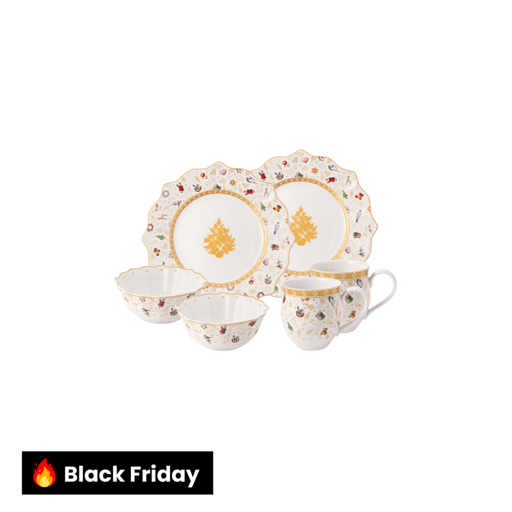 - Aparelho de Jantar Natalino Dourado - 6 Peças