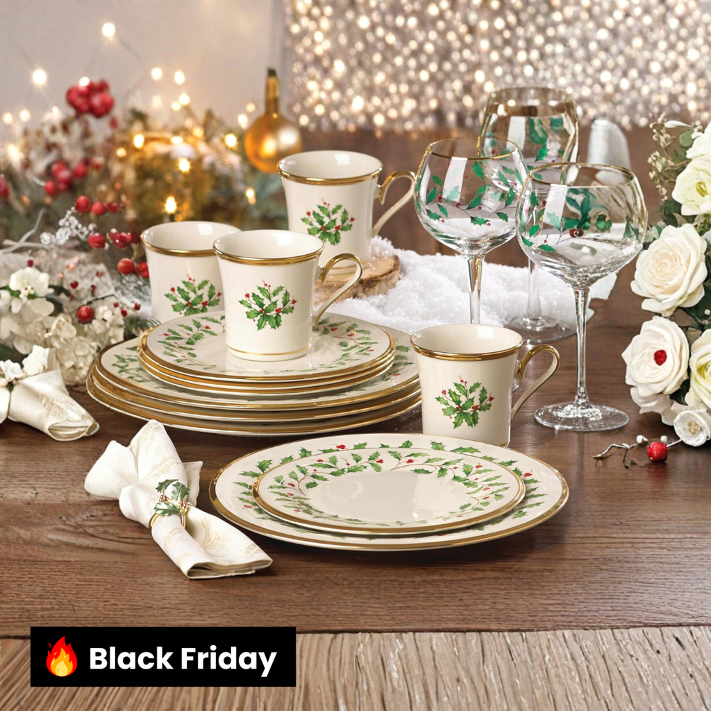 - Por que é especial: o conjunto de louça de Natal da Lenox traz um clássico de Natal para sua mesa com porcelana marfim atemporal adornada em vermelhos e verdes festivos. O icônico motivo azevinho e baga, acentuado com ouro de 24 quilates, cria uma declaração sazonal elegante que é apreciada desde 1974. Perfeita para celebrar tradições queridas, esta coleção adiciona calor e alegria a qualquer reunião de férias.