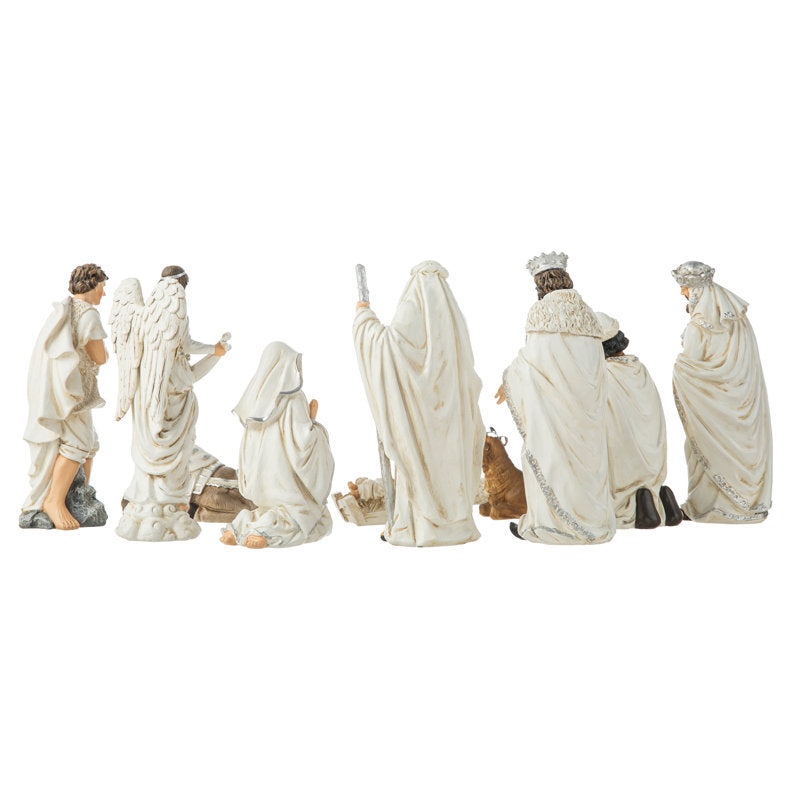 O conjunto de 12 peças de figuras de presépio em resina marfim reflete o nascimento de Jesus. Este conjunto de figuras é feito de resina para recriar esta grande história. É a decoração perfeita para lareiras ou prateleiras durante as festas de Natal. Conjuntos de presépio para decoração interna de Natal proporcionam um toque e sensação especiais.