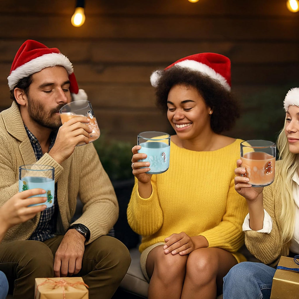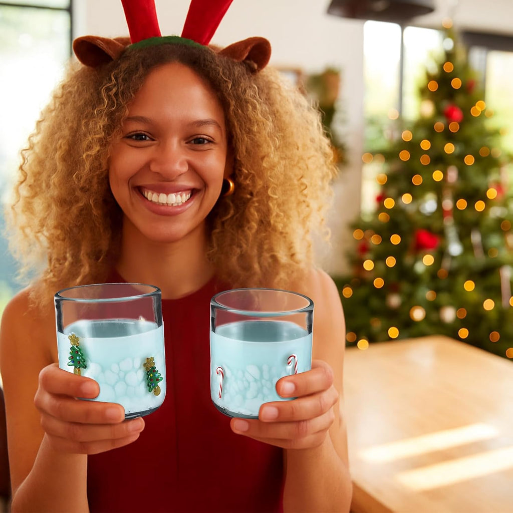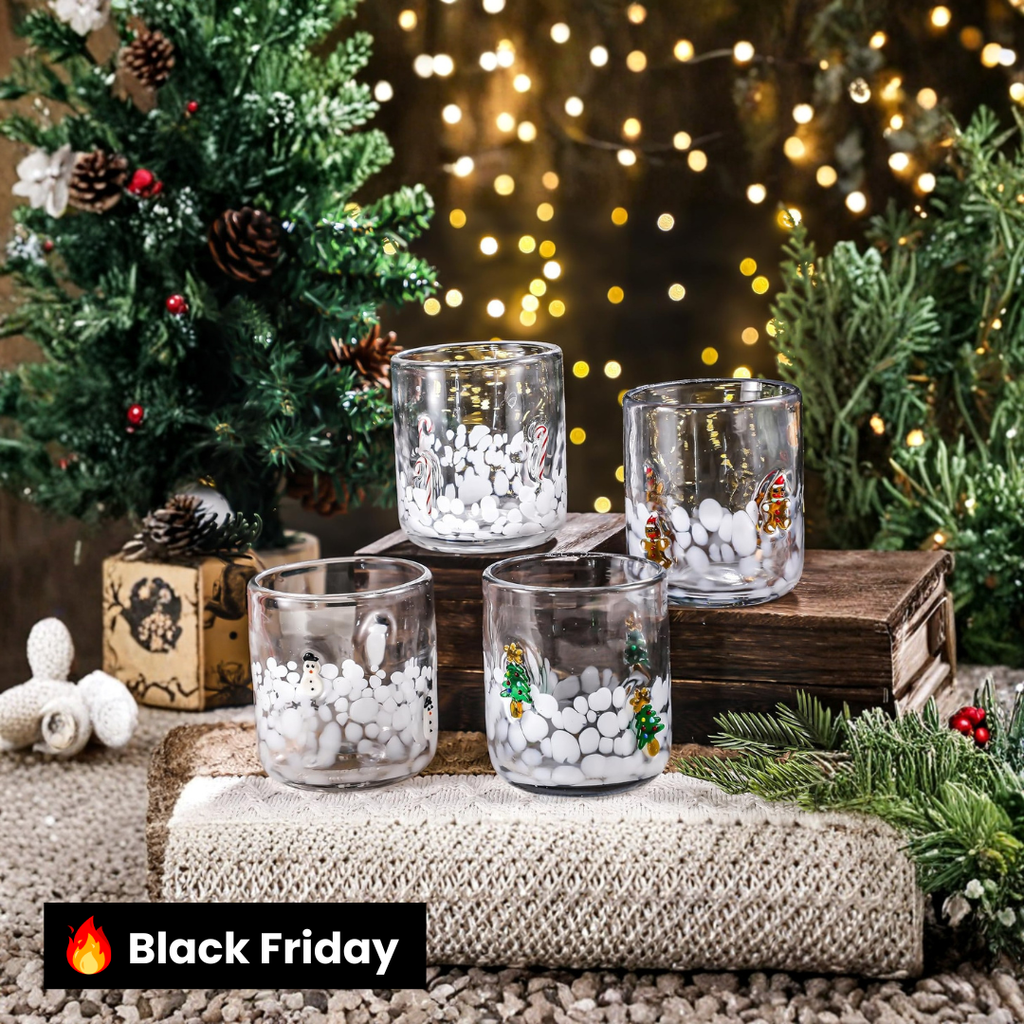 Encante seus convidados com o Kit de Copos de Vidro Natalinos da Lar do Natal, um conjunto de 4 peças exclusivas com desenhos festivos — árvore de Natal, boneco de neve, bengala doce e biscoito de gengibre. Feitos artesanalmente em vidro soprado, esses copos unem elegância e espírito natalino, perfeitos para sucos, drinks ou para compor uma mesa posta encantadora nas festas de fim de ano.