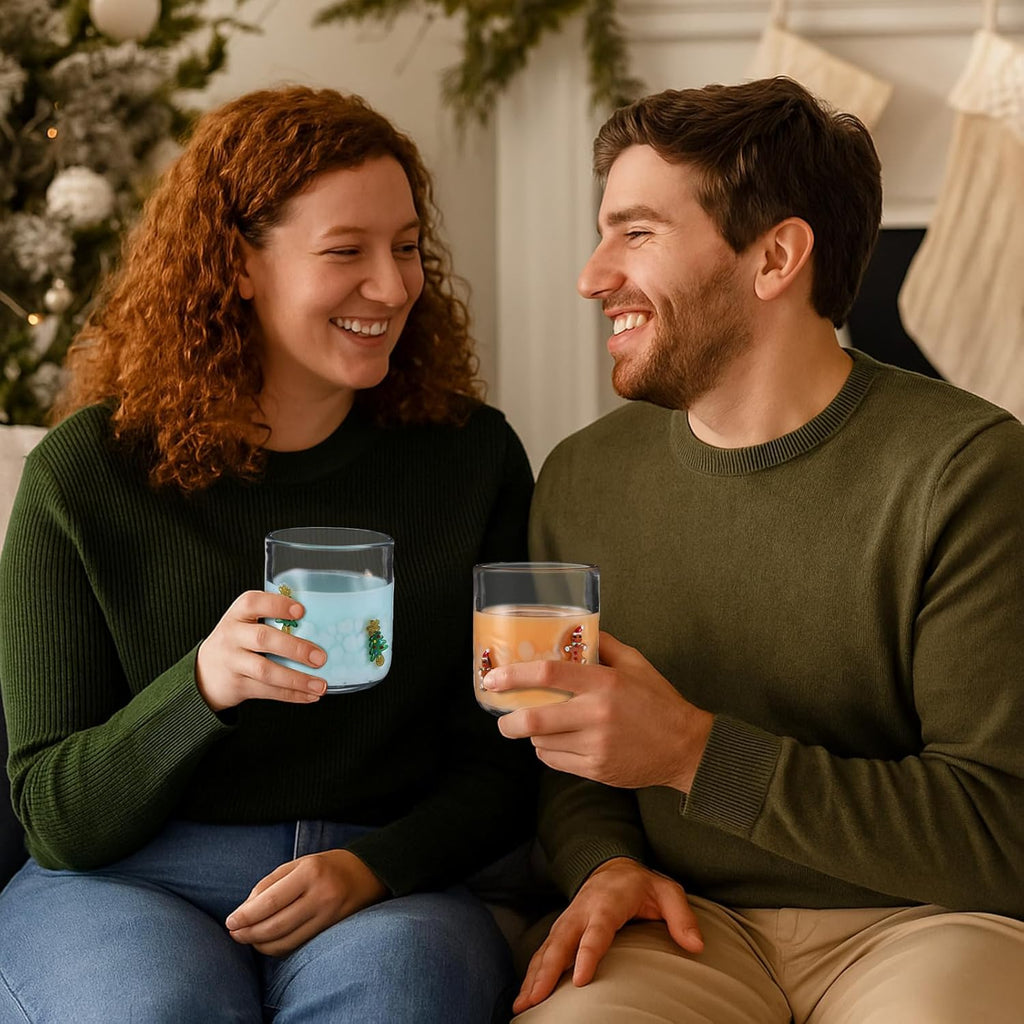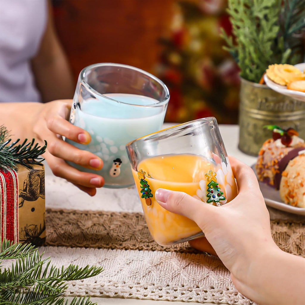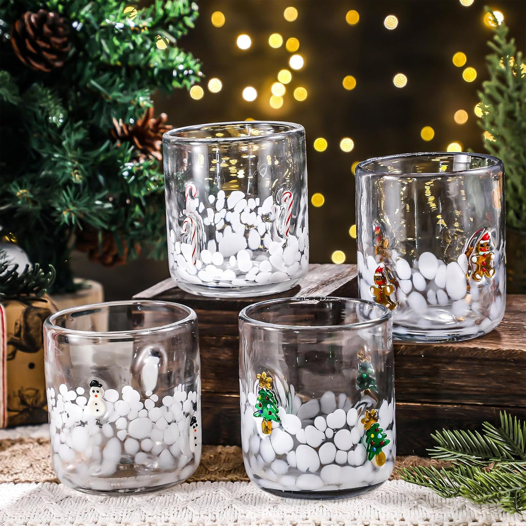 Encante seus convidados com o Kit de Copos de Vidro Natalinos da Lar do Natal, um conjunto de 4 peças exclusivas com desenhos festivos — árvore de Natal, boneco de neve, bengala doce e biscoito de gengibre. Feitos artesanalmente em vidro soprado, esses copos unem elegância e espírito natalino, perfeitos para sucos, drinks ou para compor uma mesa posta encantadora nas festas de fim de ano.